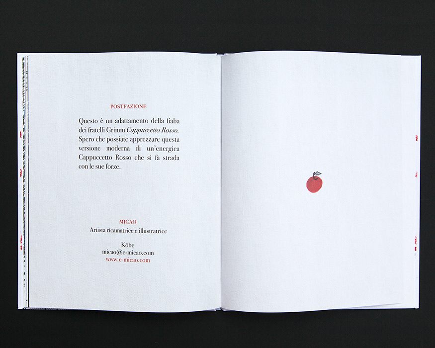 The picture book "Akazukin" based on Grimm's Fairy Tales was translated in Italian and published by Atmosphere Libri in Novermber 2017.